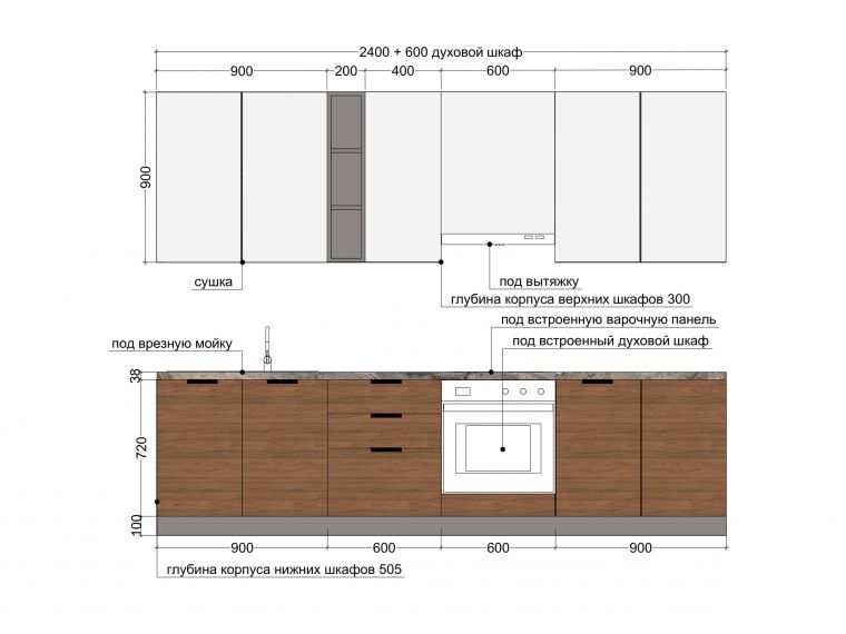 *внешний вид кухни, цвет материалов могут отличаться от представленных на фото. Перечень материалов (фасады, столешницы, фурнитура), используемых при производстве стандартных кухонь ограничен. Обращаем ваше внимание на то, что техника не входит в стоимость гарнитура. В данной кухне общий размер указан без учета отдельно стоящей плиты/духового шкафа.